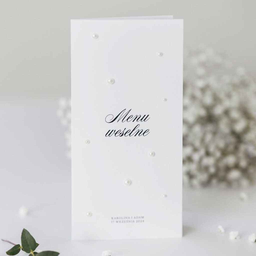 To klasyczna i elegancka forma menu, idealna na wesela o bardziej formalnym charakterze. Sprawdzi się szczególnie wtedy, gdy w menu znajduje się wiele dań, a każde z nich zasługuje na wyróżnienie. Warto rozważyć ustawienie jednego menu co 6-8 miejsc przy prostokątnych stołach lub po jednym na okrągły stół.