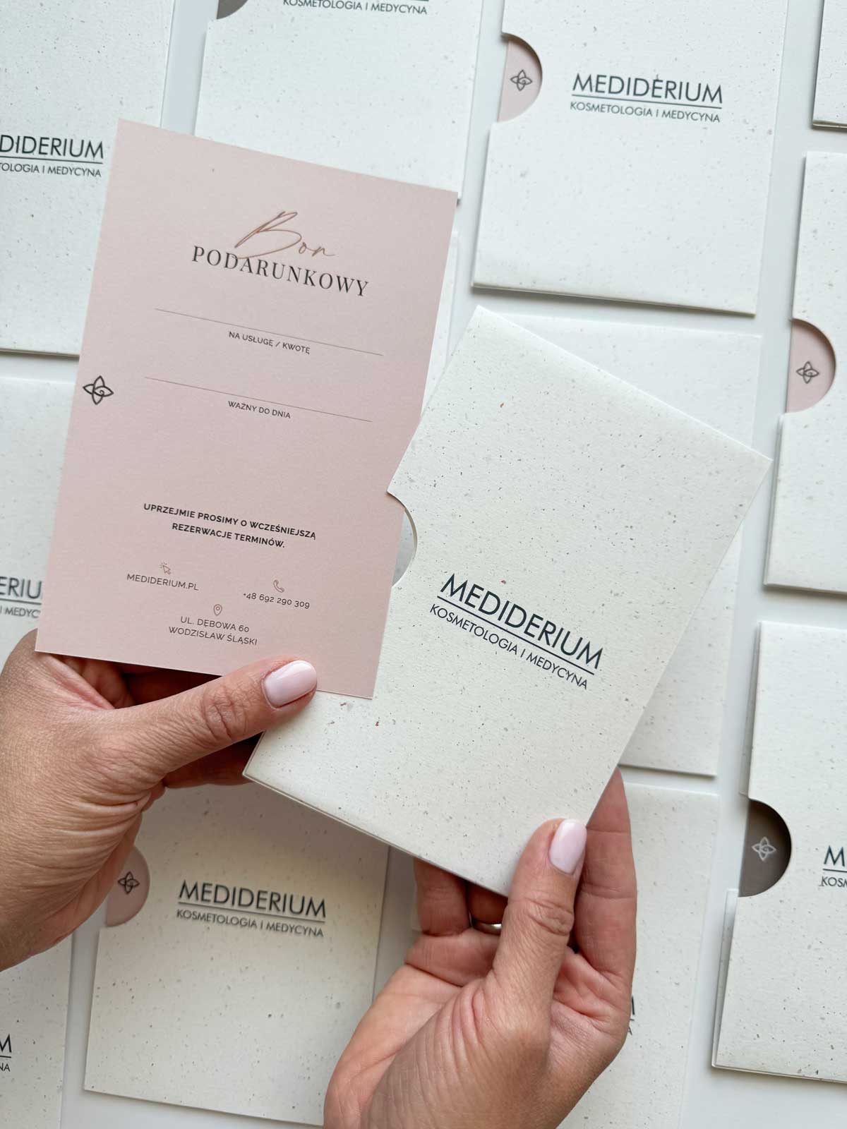 Nasze bony podarunkowe są ręcznie tworzone z dbałością o każdy detal, by oczarować zarówno Ciebie, jak i Twoich klientów. To nie tylko voucher – to prestiżowy upominek, który doskonale wpisuje się w identyfikację wizualną Twojej marki.