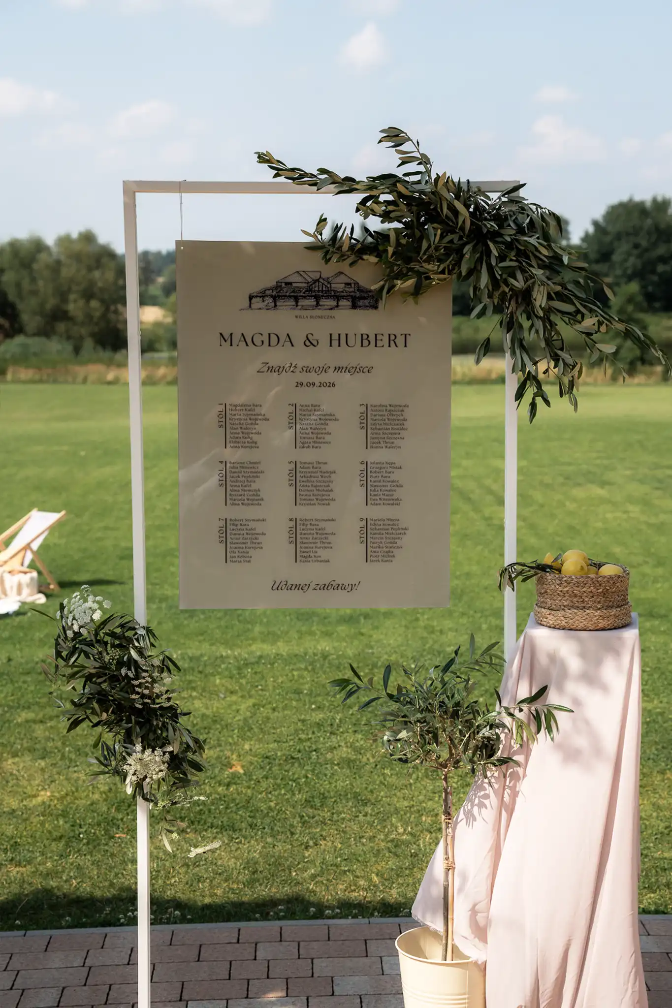 Plan stołów Willa Słoneczna doskonale pasuje do pozostałych elementów kolekcji Willa Słoneczna, tworząc spójną i stylową aranżację. To nie tylko praktyczny element organizacyjny, ale także atrakcyjna dekoracja, która wzbogaci przestrzeń Twojego wesela, tworząc niezapomnianą atmosferę.