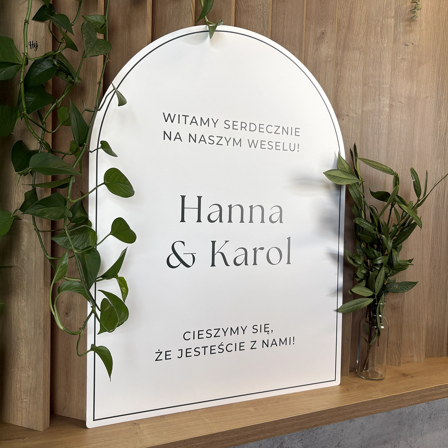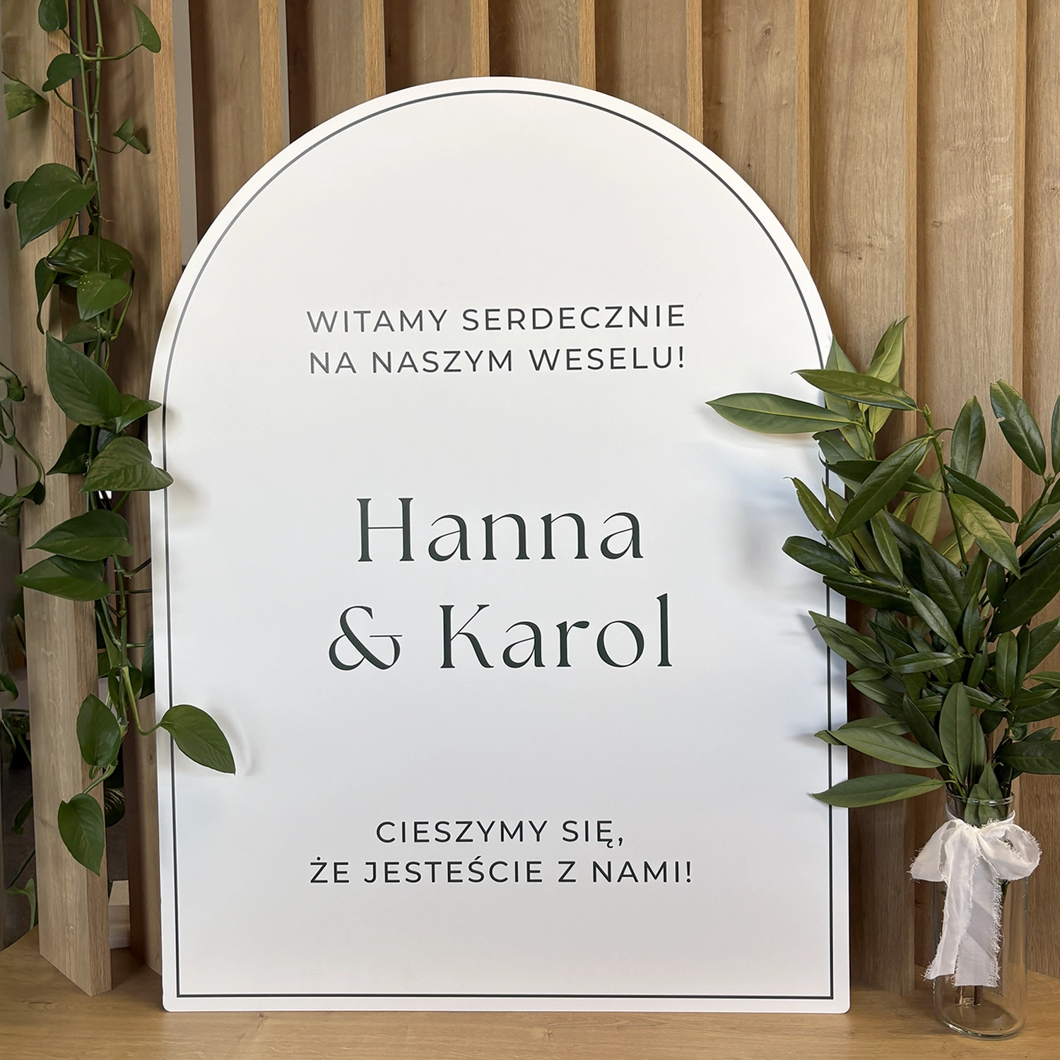 Dzięki klasycznej formie łuku tablica prezentuje się lekko i harmonijnie. To nie tylko praktyczny, ale i estetyczny detal, który wprowadza spójny ton całej uroczystości i podkreśla elegancję aranżacji.