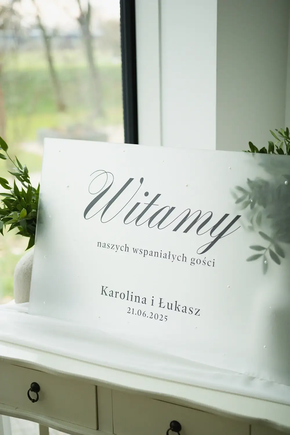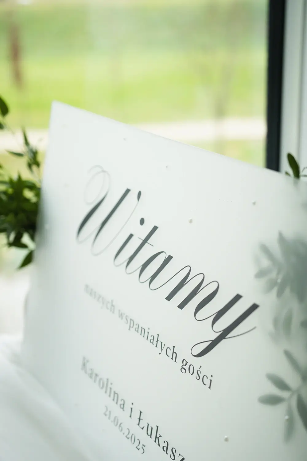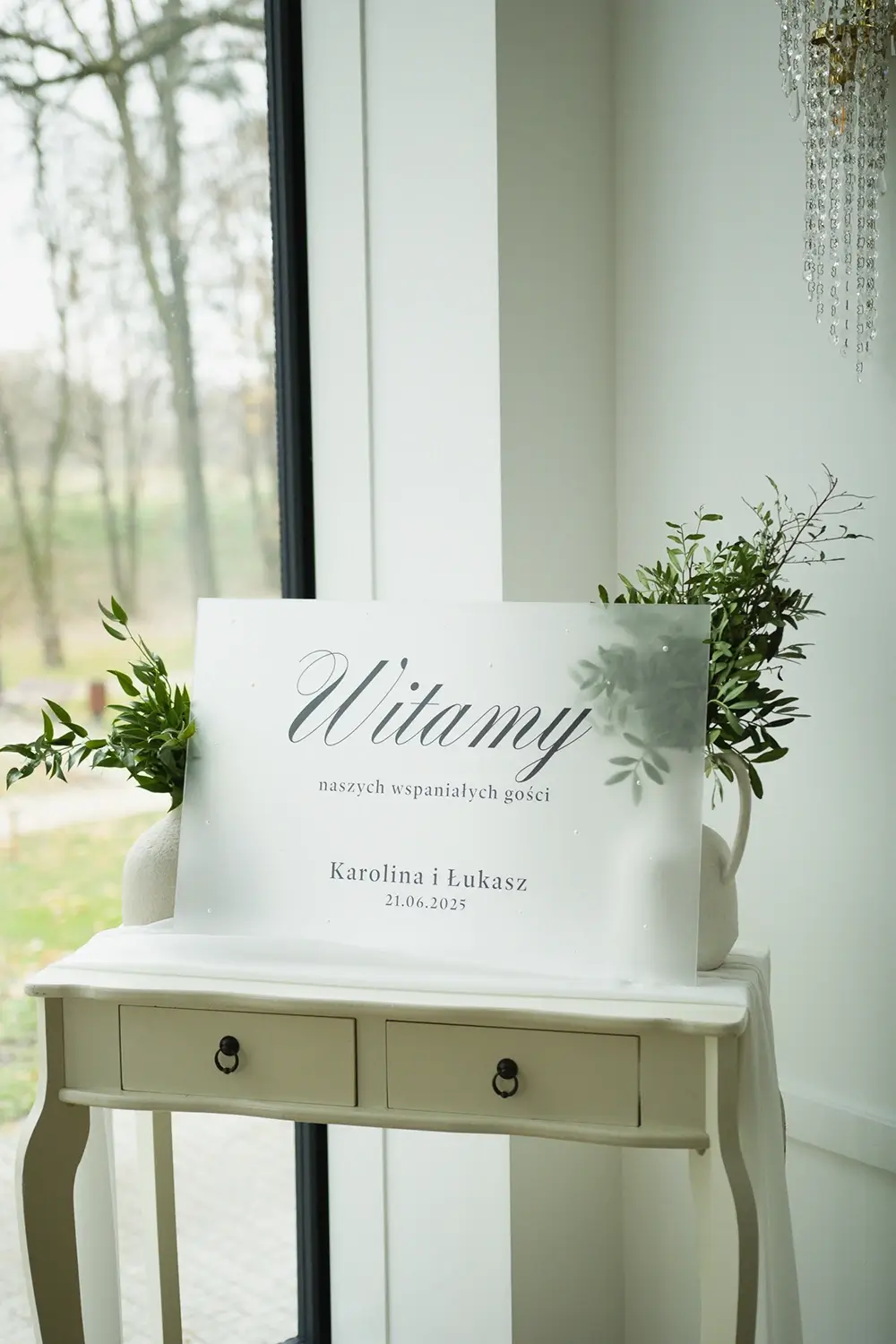 Tablica powitalna Perłowa to elegancki dodatek na Wasze wesele, który oczaruje gości już od progu. Wykonana z mrożonej plexi i ozdobiona subtelnymi perełkami, stanowi wyjątkowe połączenie nowoczesności i klasycznej elegancji. Delikatne napisy oraz minimalistyczny design idealnie wpisują się w styl glamour i romantyczne przyjęcia. To doskonały wybór dla par, które cenią sobie wyrafinowane detale i chcą, aby każdy element uroczystości był dopracowany w najdrobniejszych szczegółach.