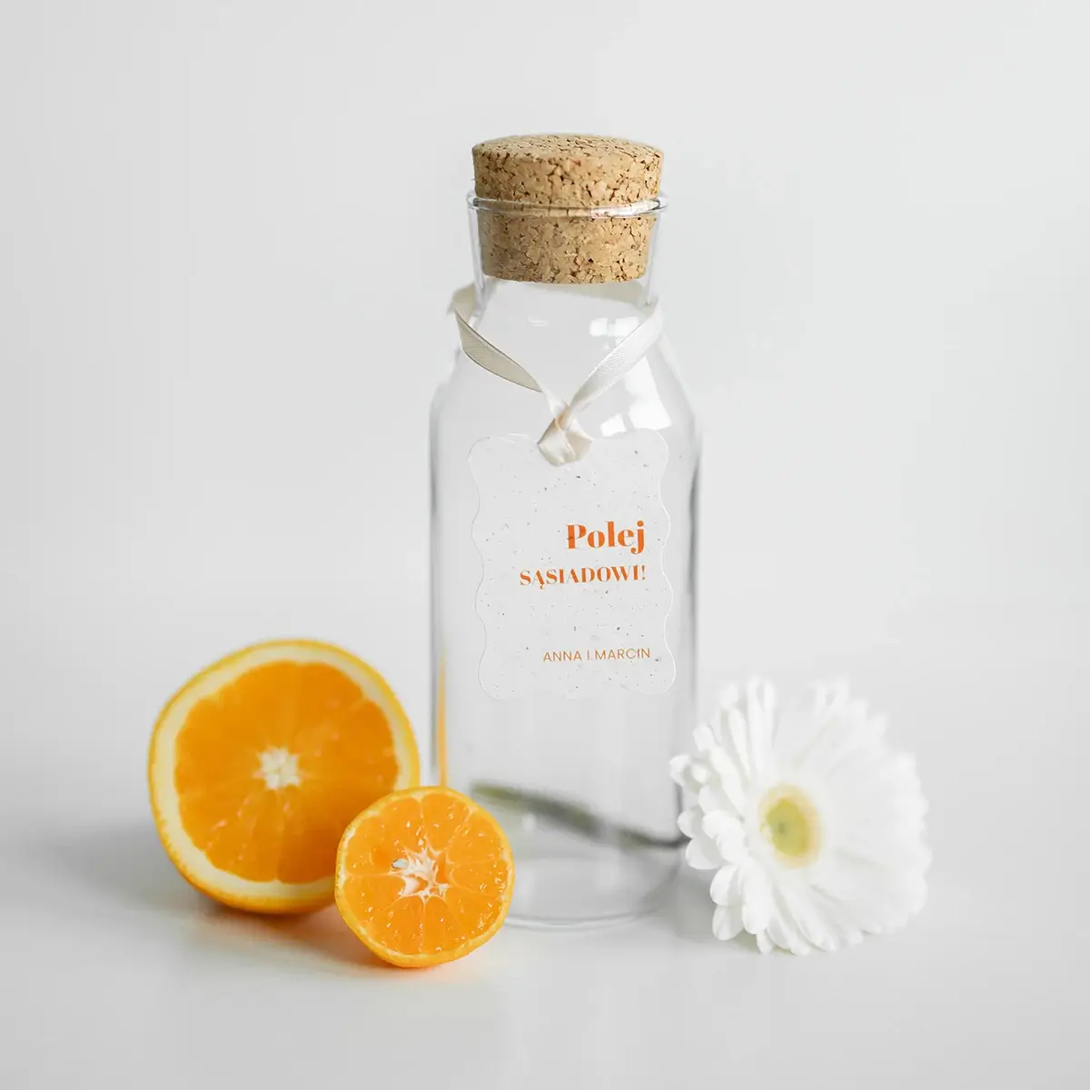 Zawieszki ślubne Sycylia to wyjątkowe dodatki, które podkreślą styl i atmosferę Twojego wesela. Wykonane z papieru w modnych kolorach – ceglastym, lastryko i brzoskwiniowym – idealnie wpisują się w nowoczesne, śródziemnomorskie aranżacje. Każda zawieszka jest personalizowana, dzięki czemu może zawierać imiona Pary Młodej, datę ślubu oraz dowolny, humorystyczny tekst, jak „Polej Sąsiadowi!” czy „Za Naszą Miłość!”. Stylowy design zawieszek świetnie uzupełni dekoracje weselne, tworząc spójną i efektowną oprawę.