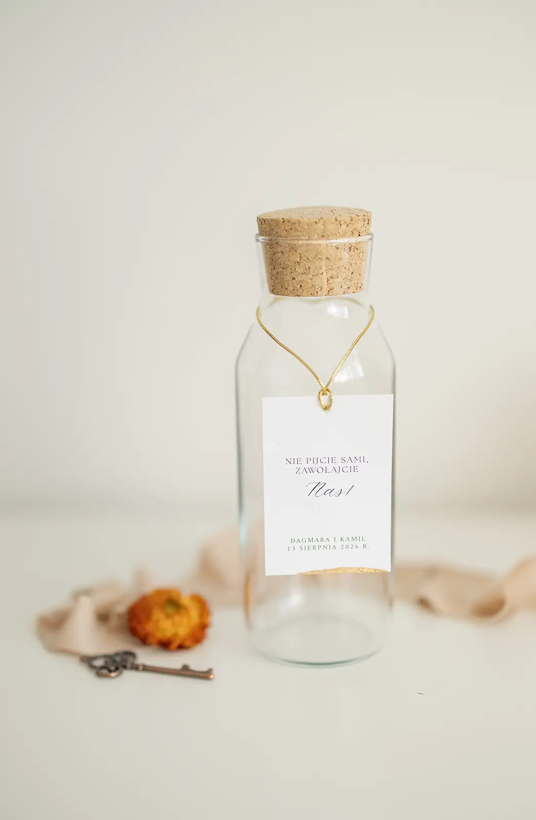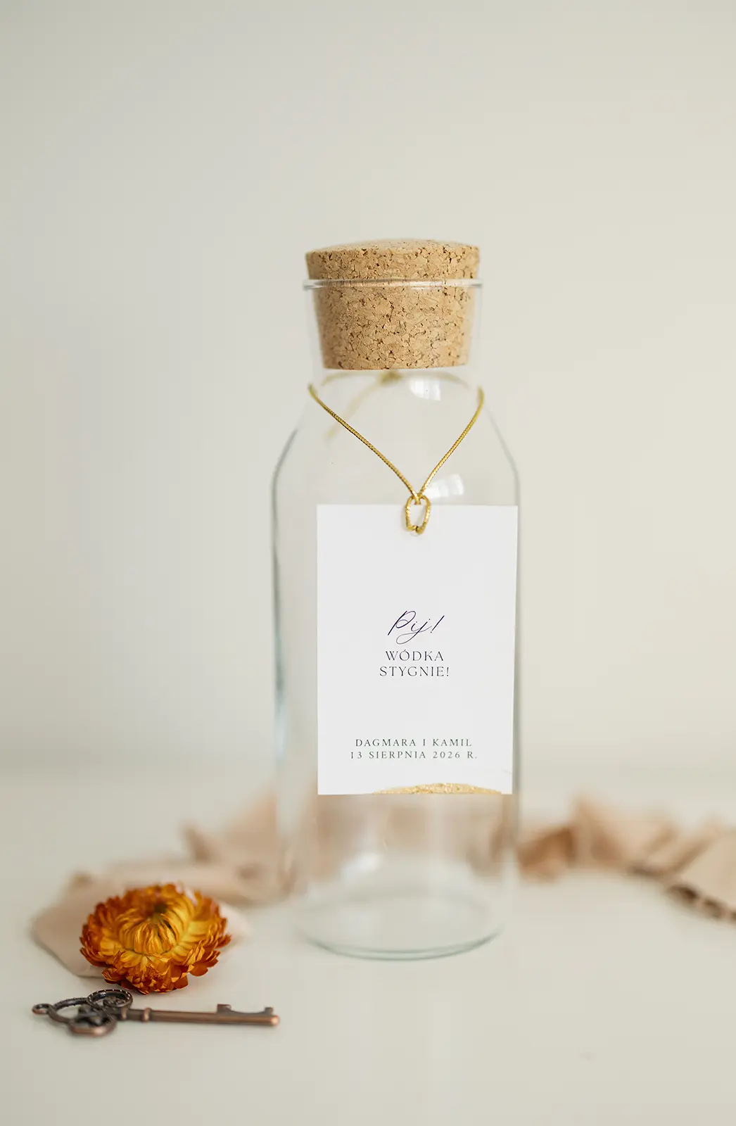 Złocone zawieszki na butelki z kolekcji Zamek Chałupki to elegancki dodatek, który idealnie wpisuje się w spójną oprawę wesela w tej wyjątkowej lokalizacji. Prosta forma, złoty sznureczek i charakterystyczne wykończenie sprawiają, że będą pięknym uzupełnieniem stołu i na pewno nie pozostaną niezauważone. Dostępne są różne wersje tekstu, także w języku czeskim – to praktyczne rozwiązanie, zwłaszcza że Zamek Chałupki leży przy granicy i cieszy się dużą popularnością również wśród czeskich Par Młodych.